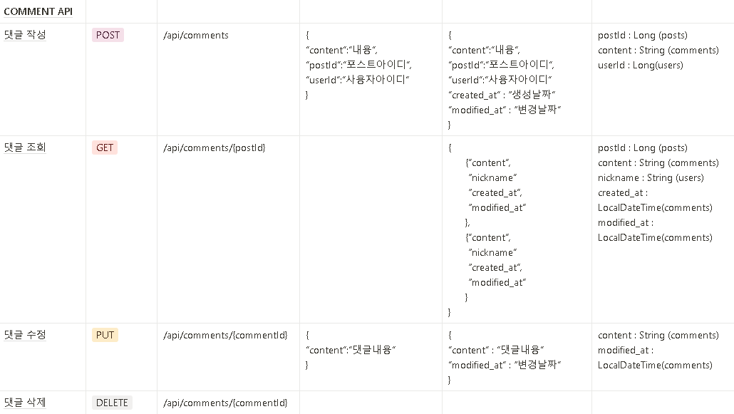 - 댓글 API명세