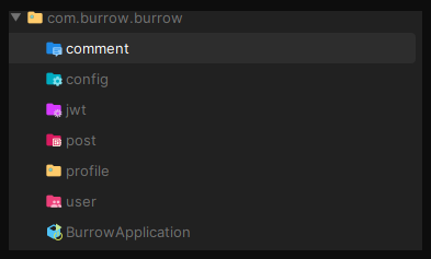 여기서 한 가지 의문점.. 분명 깃허브에 커밋할 때 패키지 경로를 아래 사진과 같이 다 만든 뒤 커밋하였는데 패키지들은 커밋되지 않았다.ㅠ (아마 비어있는 패키지는 커밋되지 않는 듯하다. 실행에 문제가 없으니..)