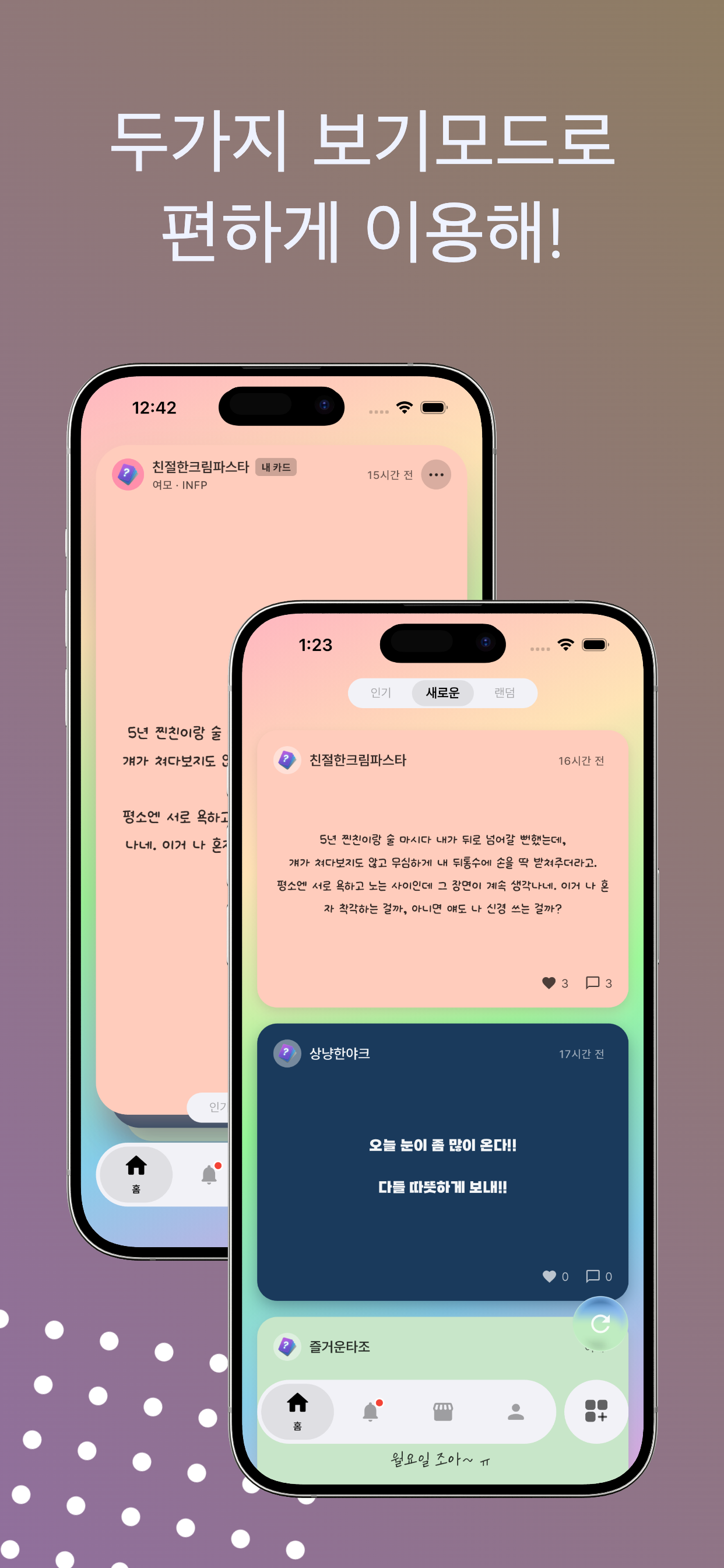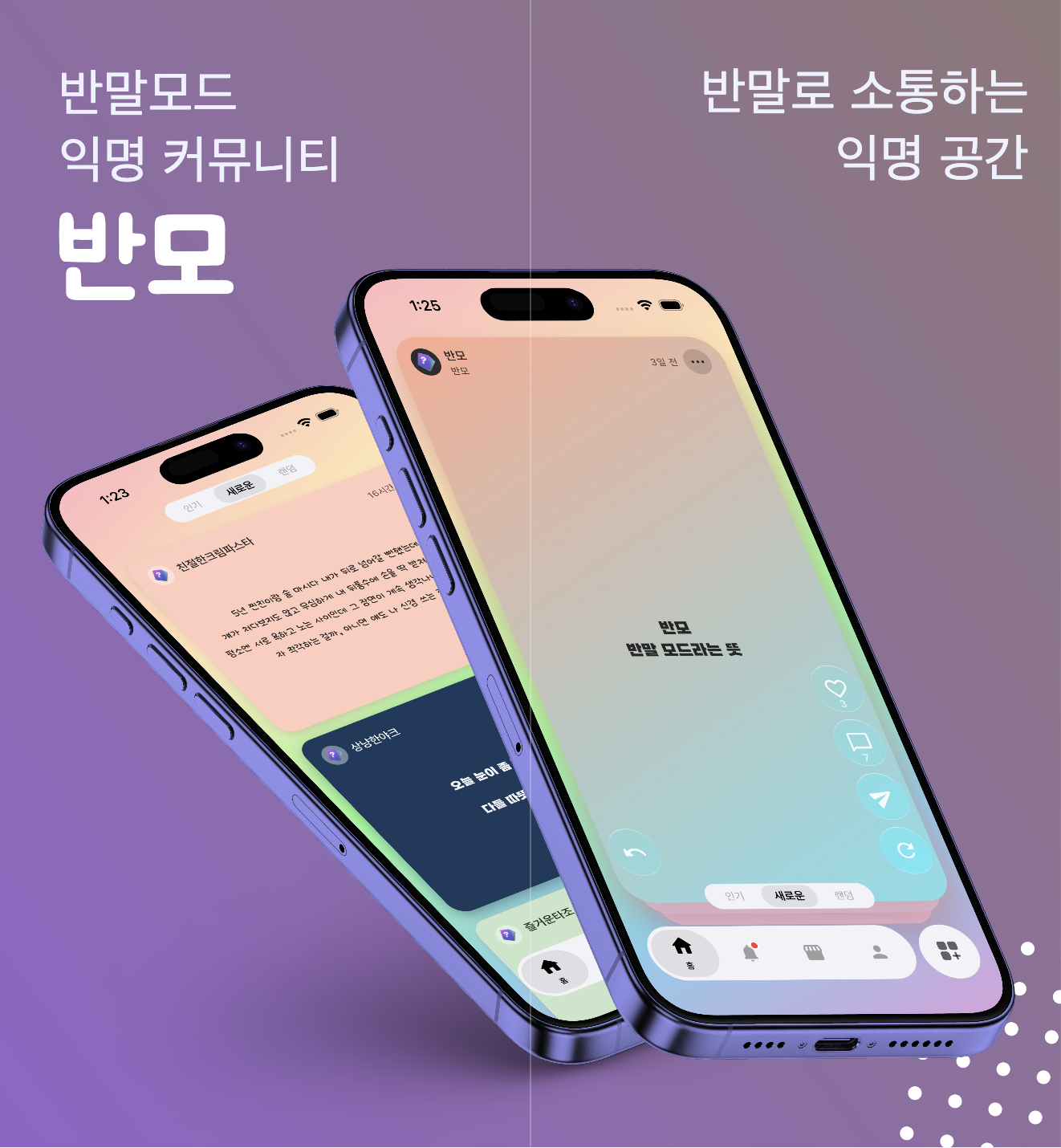 이제 나이 눈치 보지 말고, 서열 따지지 말고 오직 '나'로서 대화하고 싶은 분들이라면 지금 바로 [반모]의 세계로 들어와 보세요. 생각지도 못한 인생 친구가 여러분의 "안녕?" 한마디를 기다리고 있을지도 모릅니다.